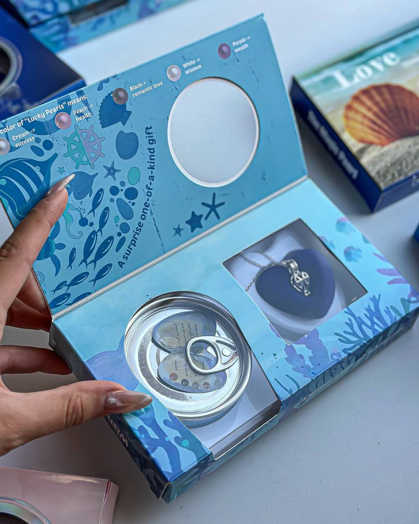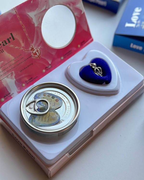 (داخل کنسرو یدونه صدف دارع و صدف رو وقتی بازش میکنید داخلش ی مروارید پرورشی و طبیعی هست که ممکنع چهارتا رنگ مختلف دربیاد که هر رنگ معنی خودشو داره که براتون میزارم و در اخر مروارید رو داخل لاکتش میزارید و به عنوان گردنبند استفاده میکنید)