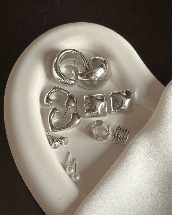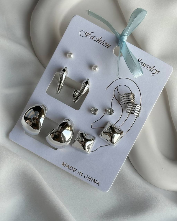 ۶ جفت گوشواره به همراه دو عدد ایرکاف(که ایرکاف نیاز به سوراخ گوش نداره)