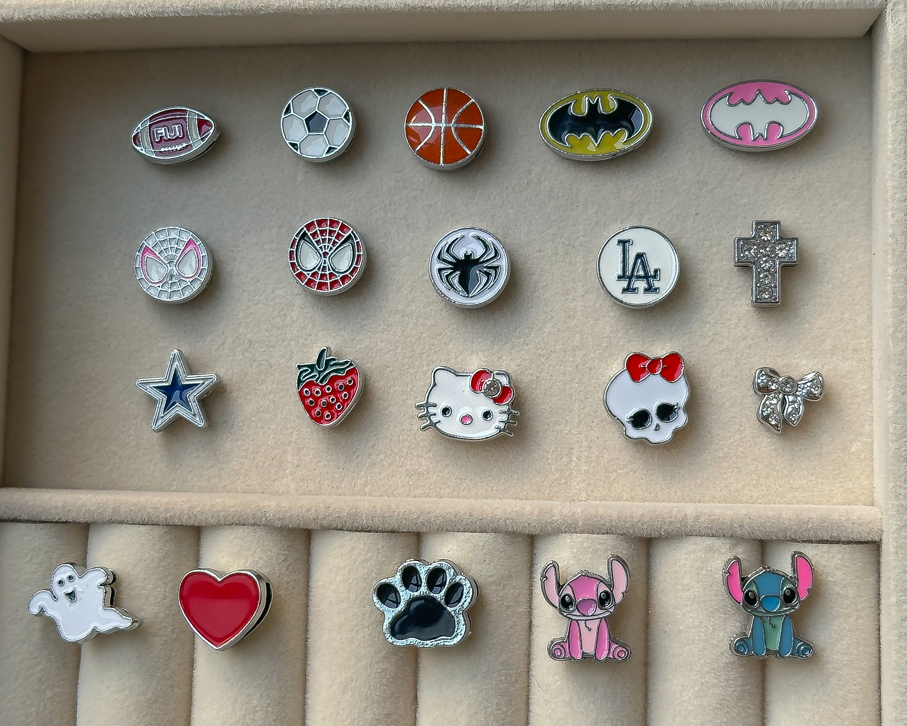 / راگبی / فوتبال / بسکتبال / بتمن زرد / بتمن صورتی / اسپایدر وُمَن / اسپایدر من / عنکبوت / لس آنجلس / صلیب / پاپیون / جمجمه / کیتی / توت فرنگی / ستاره / روح / قلب / پنجه گربه / استیچ صورتی / استیچ آبی