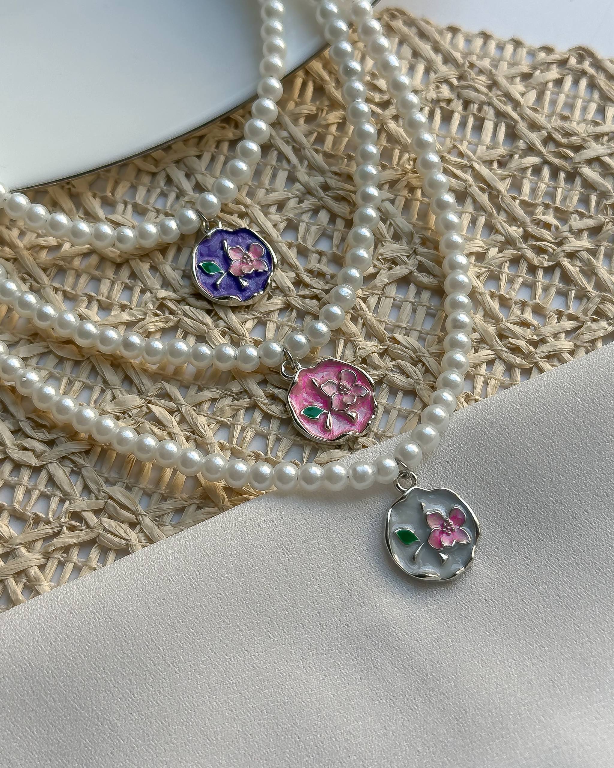 گردنبند میناکاری مرواریدی/شکوفه